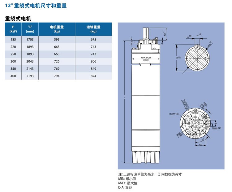 暫無12"重繞式潛水電機(jī)安裝尺寸!